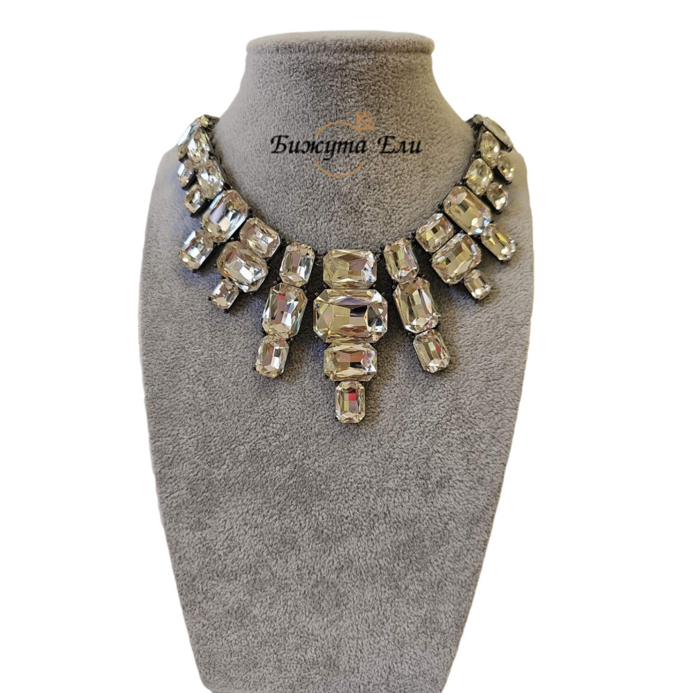 Елегантно колие , инкрустирано с бели кристали , създадено да подчертава вашия стил и изящество . перфектен акцент за всяко специално събитие и ежедневна визия .