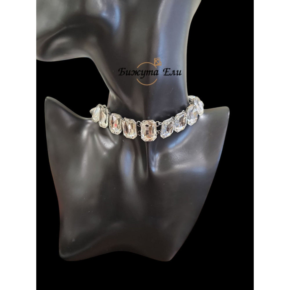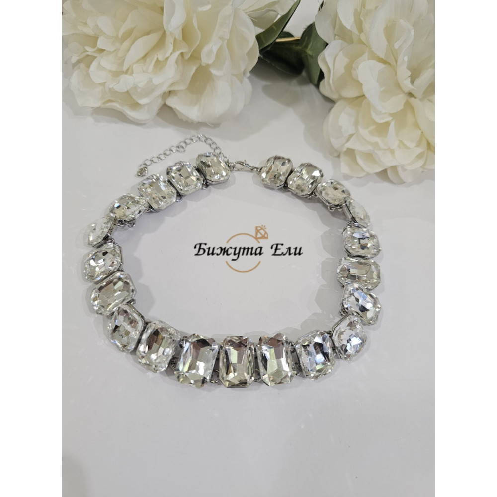 Елегантно колие , инкрустирано с бели кристали , създадено да подчертава вашия стил и изящество . перфектен акцент за всяко специално събитие и ежедневна визия .