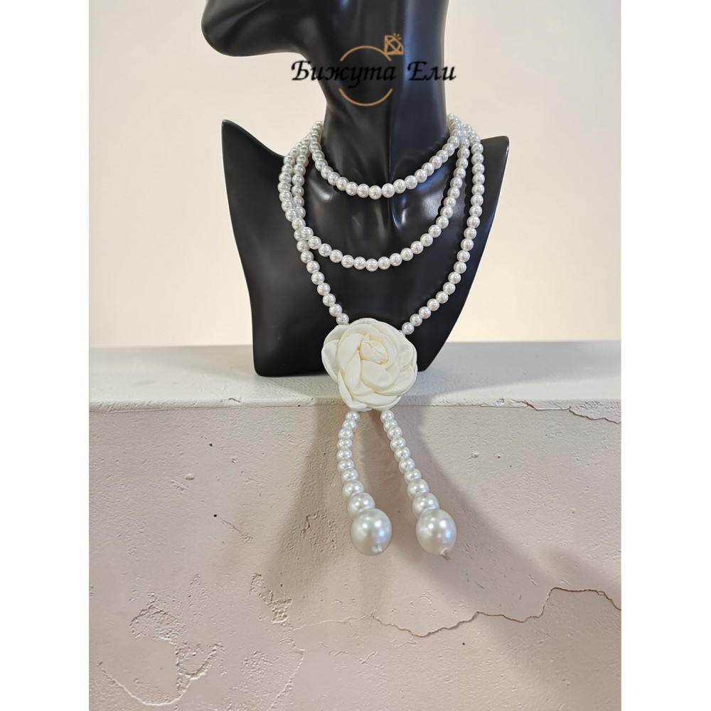Дълго колие с нежни перли и ефирно бяло цвете – символ на чистота и изящество. Перфектният акцент за всяка визия, който придава финес и женственост.