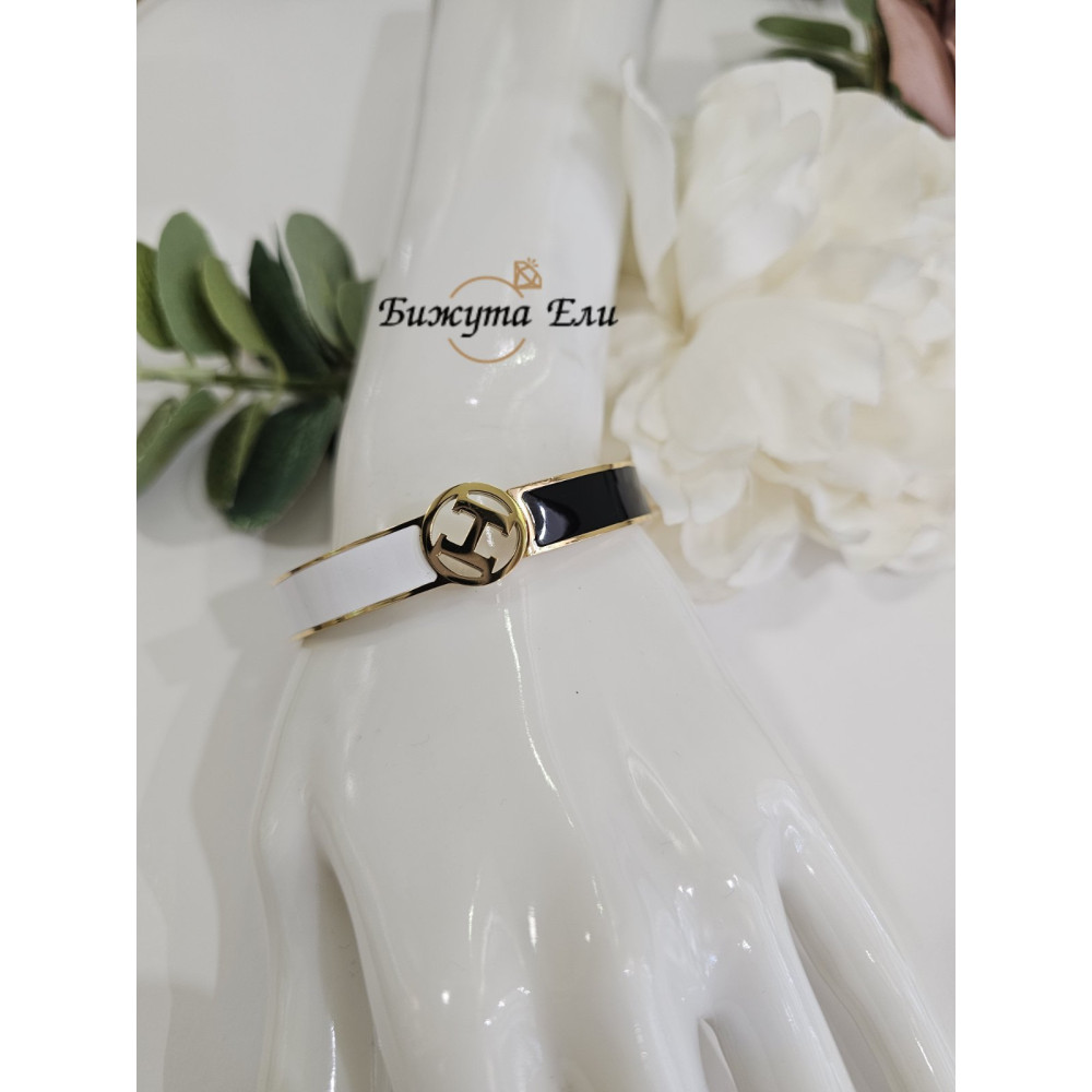 Тази изящна гривна е изработена от висококачествена хипоалергенна бижутерска сплав, което я прави подходяща дори за най-чувствителната кожа. Повърхността е покрита с износоустойчиво златно покритие, придаващо блясък, дълбочина и усещане за лукс.