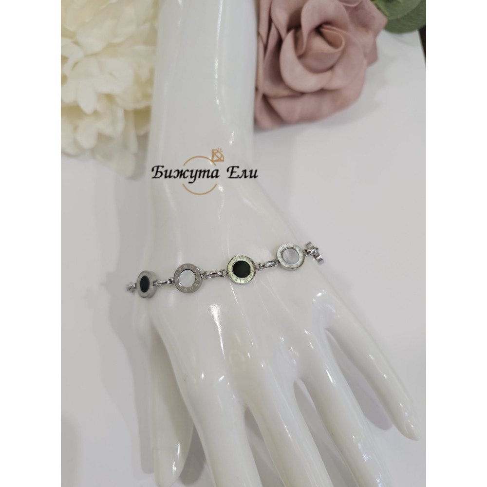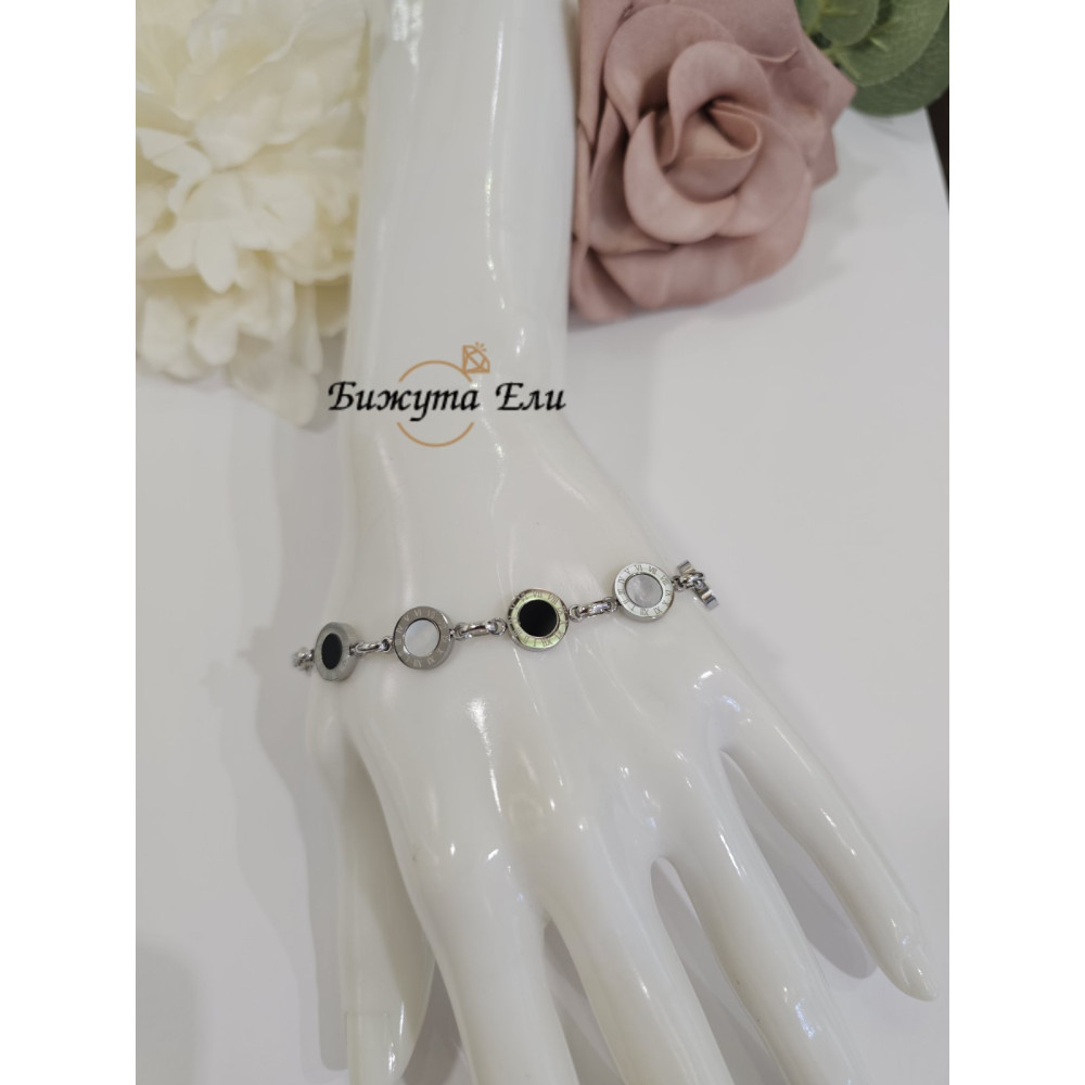 Тази изящна гривна е изработена от висококачествена хипоалергенна бижутерска сплав, което я прави подходяща дори за най-чувствителната кожа. Повърхността е покрита с износоустойчиво сребърно покритие, придаващо блясък, дълбочина и усещане за лукс.