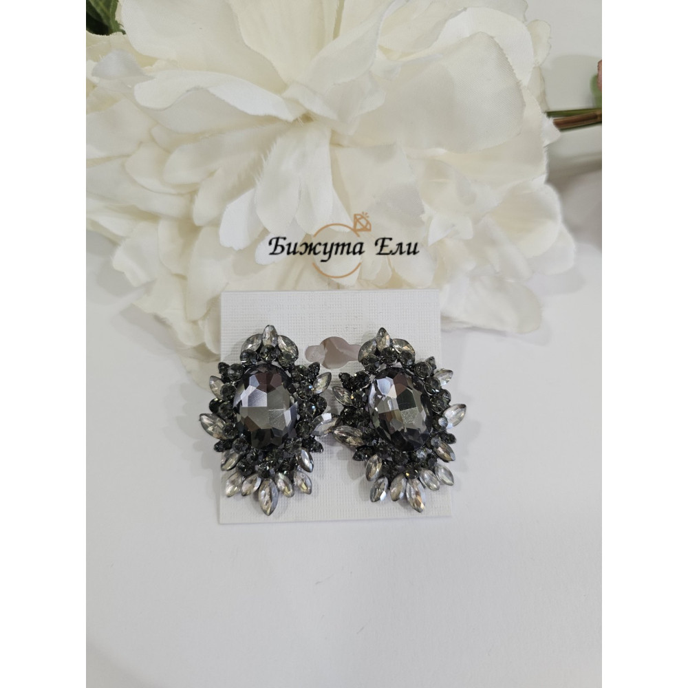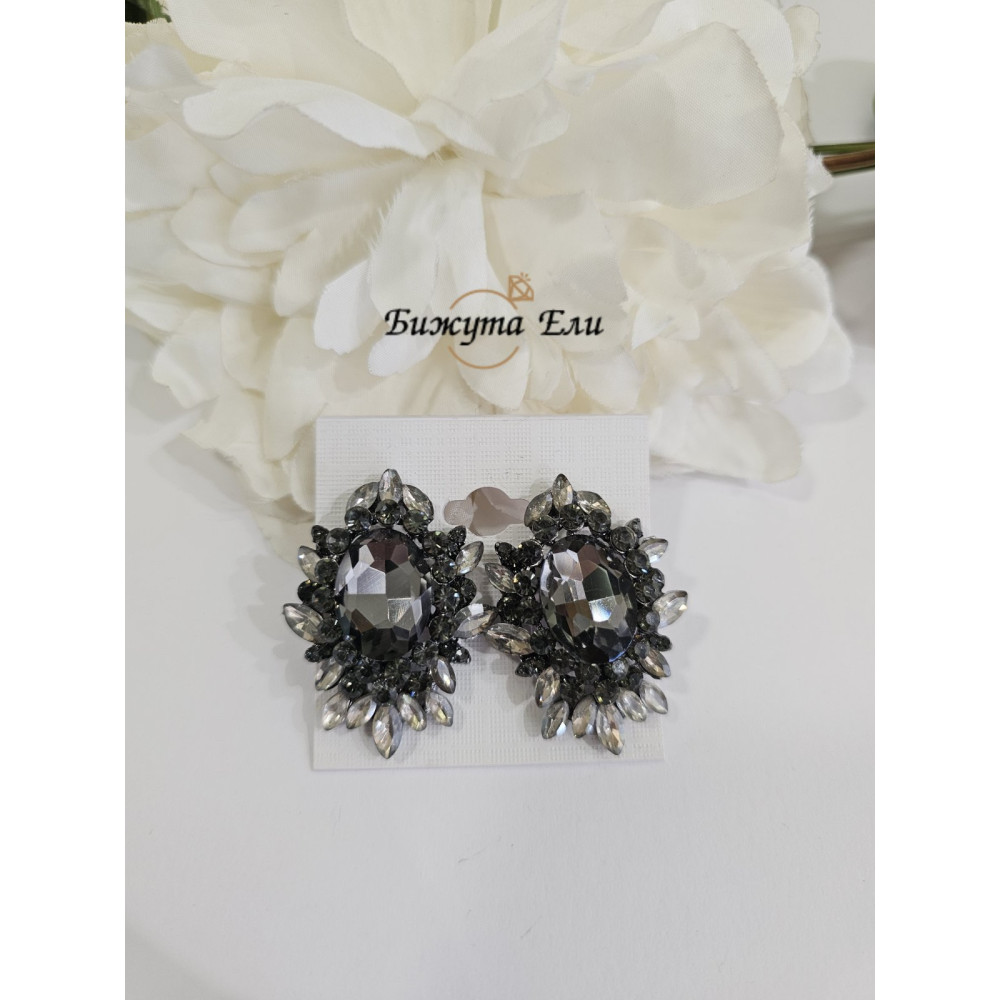 Обеците са на клипс , изработени от бижутерийна цинкова сплав , която не съдържа никел , обеците са с кристали цвят графит