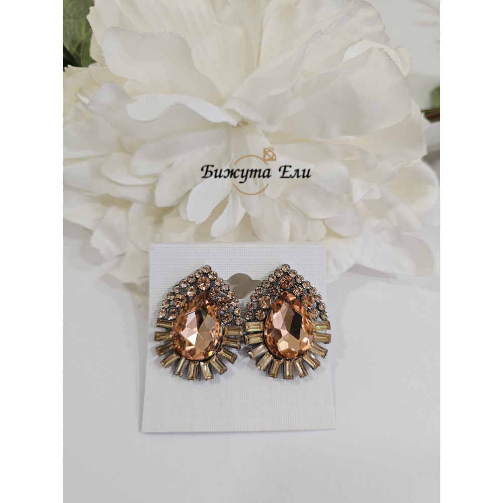 Обеци клипс с кристали розе голд