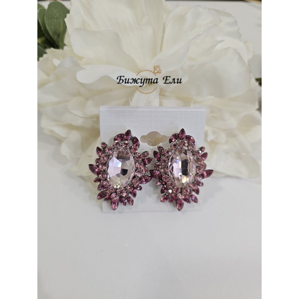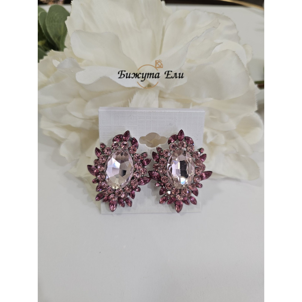 Обеците са на клипс , изработени от бижутерийна цинкова сплав , която не съдържа никел , обеците са с  розови   кристали