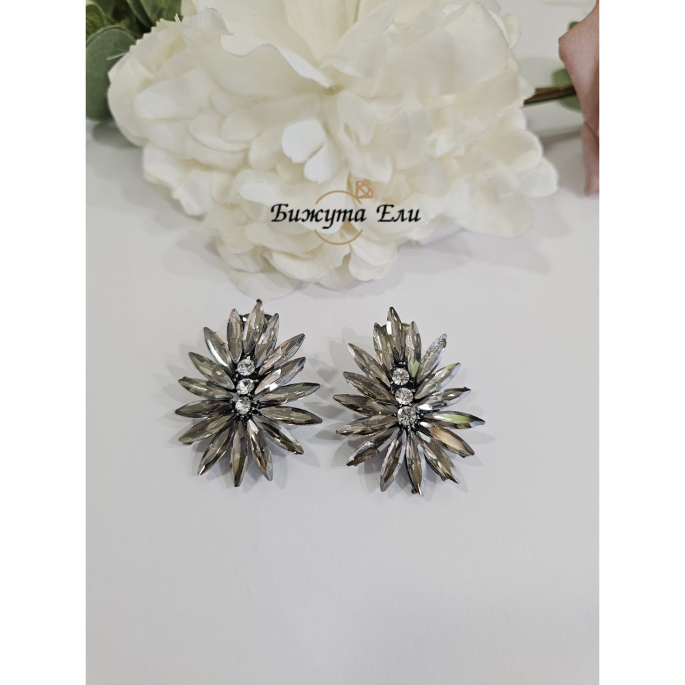 Обеците са на клипс , изработени от бижутерийна цинкова сплав , която не съдържа никел , обеците са с кристали в цвят графит