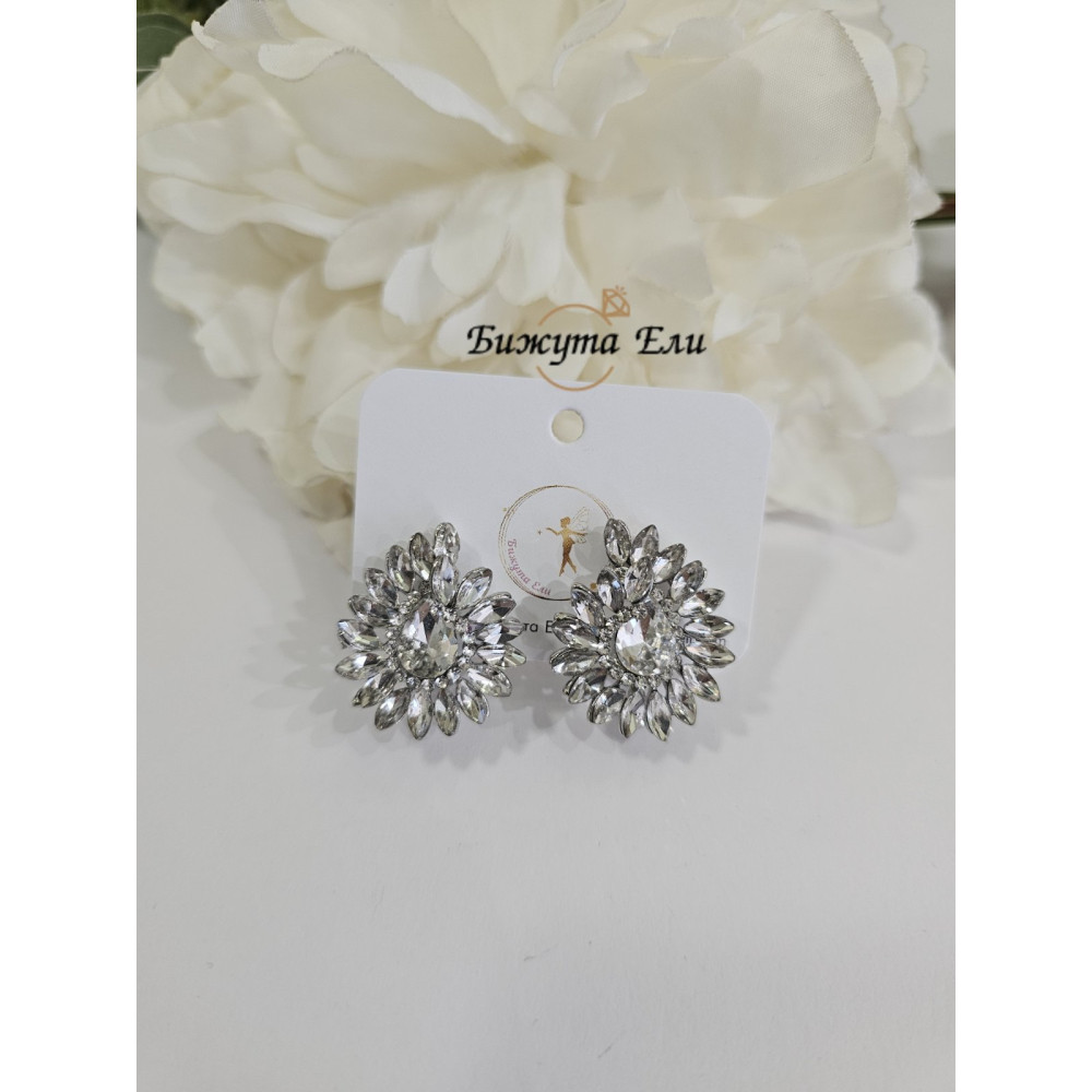 Красиви и елегантни обеци с бели кристали , те са с клипс .